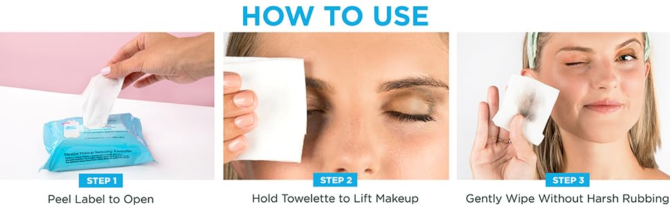 Išimkite servetėlę ir švelniai nuvalykite makiažą ir visus nešvarumus nuo odos. Kruopščiai nuplaukite drungnu vandeniu. Kad servetėlės neišdžiūtų, po naudojimo sandariai uždarykite pakuotę.
