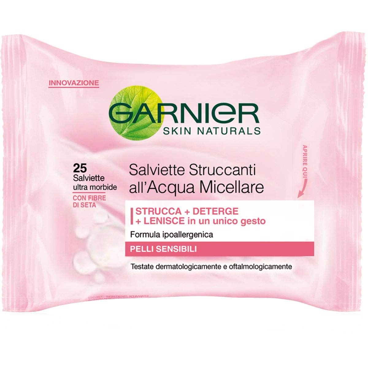 Garnier Skin Naturals micelinės servetėlės makiažui valyti jautriai odai 25vnt – Garnier skinactive servetėlės puikiai pašalina net vandeniui atsparų makiažą, oda lieka visiškai sausa, turi gaivinamąjį ir raminamąjį poveikį. Valyti makiažą yra būtina norint prižiūrėti veido odą. Veido makiažo valiklis Garnier Skinactive efektyviai pašalina visą makiažą, jūsų oda tampa švelni, idealiai švari ir paruošta kitoms veido priežiūros priemonėms naudoti. Micelinės valomosios makiažo servetėlės efektyviai, tačiau švelniai valo odą, šalina per dieną susikaupusius nešvarumus, makiažo likučius ir riebalų perteklių. Micelinės dalelės lyg magnetai pritraukia nešvarumus ir akimirksniu juos pašalina. Sudėtyje esantys ingredientai ramina jautrią ir sudirgusią odą, saugo ją nuo paraudimo. Tinka ir itin jautriai odai.
