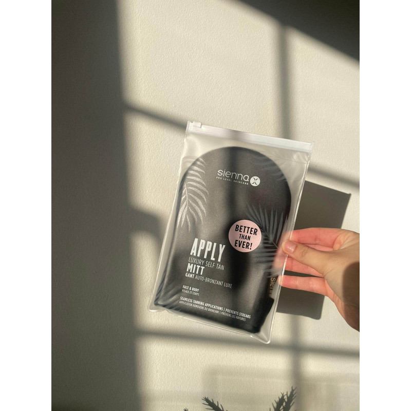 Sienna X Luxury Self Tan Mitt savaiminio įdegio pirštinė skirta tolygiam pasirinktos savaiminio įdegio priemonės (putos, losjonas, dulksna ar kt.) padengimui. Pirštinė idealiai tinka naudoti namuose, norint pasiekti tolygų ir profesionaliai atrodantį įdegį.