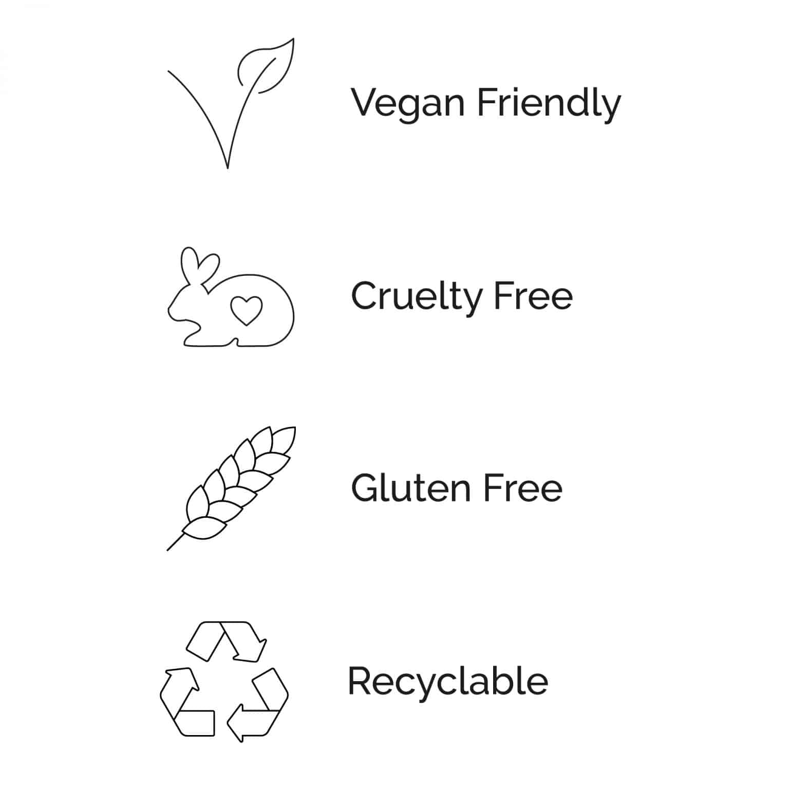 Veganinė produkto formulė, be parabenų, gliuteno, GMO, SLS, mineralinių aliejų bei naftos.