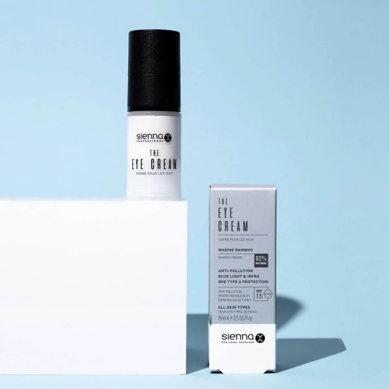 Lengvos tekstūros Sienna X The Eye Cream paakių kremas su SPF15 sukurtas mažinti odos suglebimą, šviesinti paakius, apsaugoti paakių odą nuo aplinkos taršos. Formulės sudėtyje esantis jūrinis bambukas pasižymi poveikiu prieš žalingą mėlynąją šviesą ir infraraudonuosius spindulius. Kremas skirtas stangrinti ir lyginti paakių srities odą, mažinti raukšles.